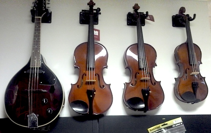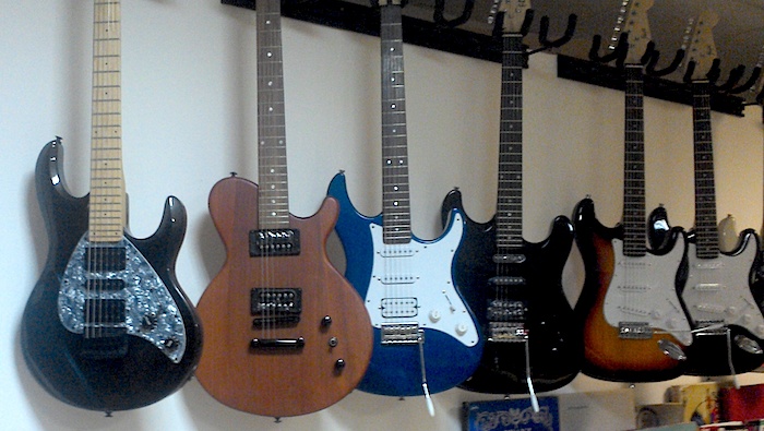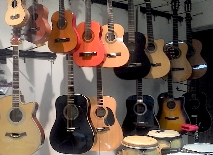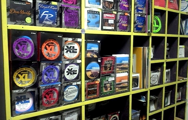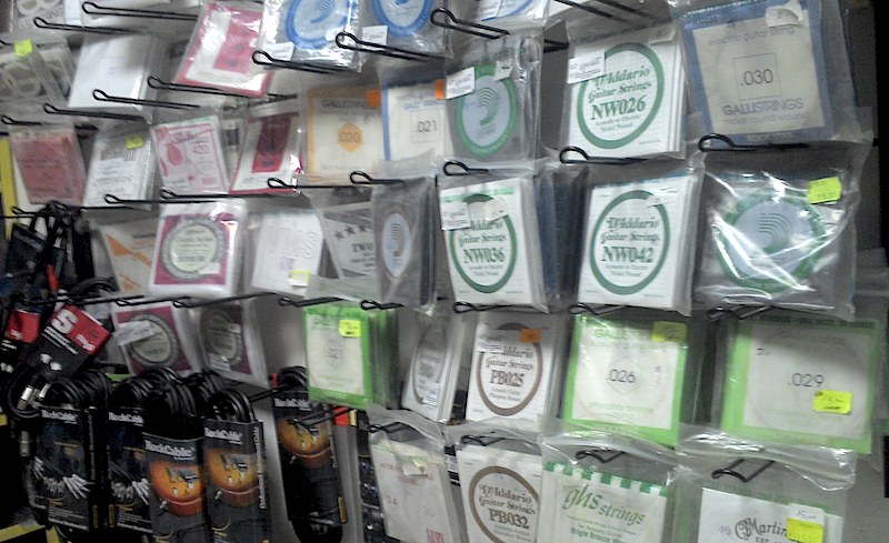 - Veliki izbor akustičnih i električnih gitara i ostalih žičanih instrumenata kao mandoline, violine, te dodatne oprema, žice, stalci, pojačala, futrole itd.